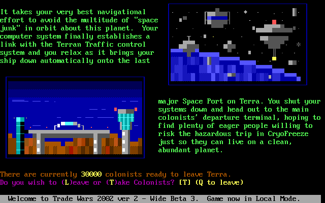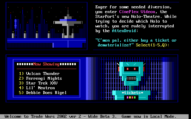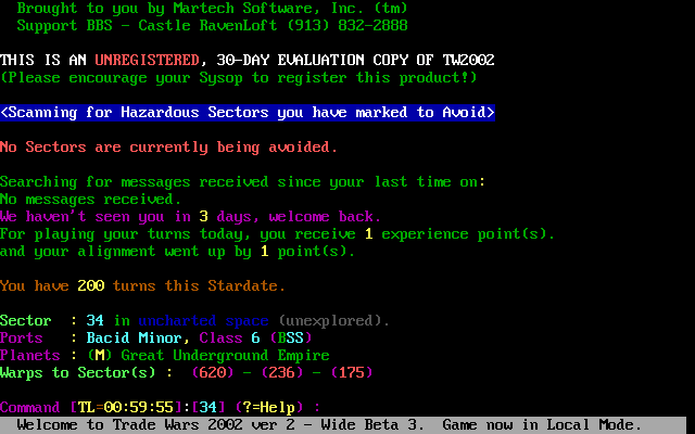 Beyond aesthetics, the simplicity of the visuals has practical advantages. Load times are nearly nonexistent, and the game can run on virtually any machine or terminal emulator. Whether you’re on a modern desktop or a legacy DOS box, the experience remains consistent. This universal compatibility ensures that Trade Wars 2002 is as accessible today as it was in its dial-up heyday.