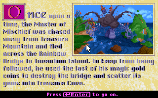 The narrative kicks off in dramatic fashion: the Master of Mischief has destroyed the Rainbow Bridge, sending its shining jewels plunging into the ocean’s depths. With the bridge in ruins, access to Invention Isle—where the fiendish inventor resides—is cut off, allowing him to unleash wave after wave of Goobies. Your goal as the Super Seeker is clear: recover the gems, rebuild the bridge, and put a stop to his schemes once and for all.