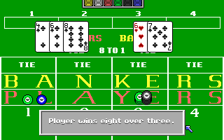 The CGA version, while more austere, still effectively communicates game states through its four-color scheme. Roulette wheels and cards are represented simply but legibly, ensuring that gameplay clarity isn’t sacrificed. If you’re primarily after the table action, the CGA graphics hold up surprisingly well, though you’ll miss out on the resort’s decorative flourishes.