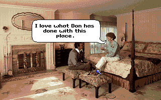 On EGA-equipped systems, Trump Castle II showcases a vibrant palette of 16 colors, lending life to richly patterned carpets, faux-marble columns, and ambient chandeliers that hang over each gaming table. Character sprites for both your avatar and the NPCs are crisp, with enough detail to convey personality during brief conversations in the halls or lounges. The UI overlay for each casino game is intuitive, with clear card and chip art that makes reading your hand or tallying bets a breeze.