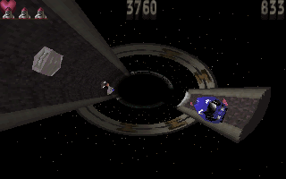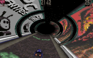 Subtle graphical touches—the occasional flicker as you zip past a wall segment, the stretching perspective of converging lines—add polish without overcomplicating the presentation. While there’s no texture detail or elaborate lighting, the consistent frame rate and smooth animations make Tube’s vector world feel alive. It’s a testament to Bullfrog’s ability to squeeze maximum impact out of minimal resources.