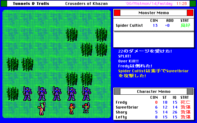 Character and monster designs draw directly from the Tunnels & Trolls bestiary, offering a diverse roster of creatures—from ogres and goblins to more exotic foes like sentient golems. Animations are modest but purposeful: sword swings, spell castings, and creature roars are smoothly executed, giving battles a lively feel despite hardware limitations. Small visual flourishes, such as flickering torchlight in dungeons and subtle weather effects on the overworld, further enhance immersion.