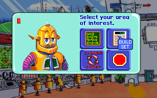 Graphically, Turbo Learning: Mega Math embraces the early ’90s Sierra art style, complete with chunky pixel characters and bright, saturated backgrounds. The mini-games each sport a unique theme—ranging from a laboratory setting to a futuristic cityscape—providing visual variety as children advance through algebraic levels. The environments are charmingly detailed for an educational title, with animated props adding life to each stage.