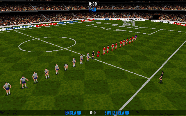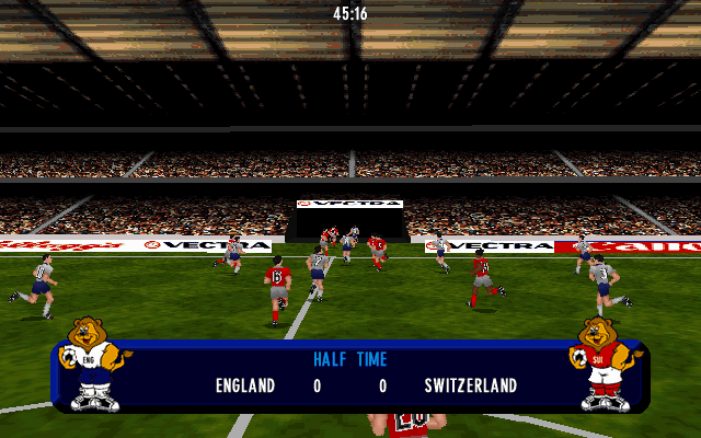 Built on the Actua Soccer engine, UEFA Euro 96 England sports fully polygonal players and stadiums, a notable step up from the sprite-based titles of earlier years. Each national kit features accurate colors and emblems, and face detail—while blocky by today’s standards—captures the essence of players in the mid-’90s. Stadiums like Wembley boast realistic crowd textures and dynamic flags fluttering in accordance with wind settings.