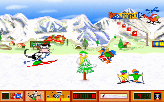 Animation frames are brief but effective. Vardit’s skiing gait and surfboard bounce cycle smoothly, and environmental effects—such as falling snowflakes or splashing wave caps—add a dynamic sense of motion. On CRT monitors, the visuals retain enough sharpness and contrast to keep gameplay readable even during heated collection runs.
