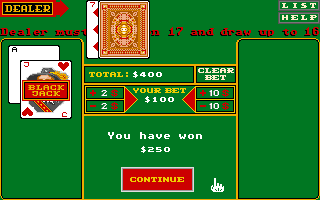 Vegas Gambler centers on four classic casino staples—Video Poker, Roulette, Black Jack, and Slots—offering a solo gambler’s paradise from the comfort of your screen. You begin with a bankroll of $500 and must manage your wagers carefully to stretch your funds and chase that elusive big win. The game’s menu-driven interface walks you through each table, making it easy to jump between different games without confusing submenus.