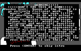 Voodoo Girl: Queen of the Darned greets you with a deceptively simple premise—fetch a handful of bizarre ingredients for Mama Houngan’s next big recipe. Yet beneath that innocuous shopping list lies a cleverly layered adventure. You’ll guide Voodoo Girl across winding mountain trails, bustling village markets, and shadowy caverns, each location bristling with unique hazards and hidden shortcuts. Dodging falling rocks, solving environmental puzzles, and navigating the aptly named “Incredibly Twisty Maze-Like Cave” keep the core loop both varied and engaging.
