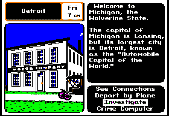 Although released in the late ’80s, the game’s pixel art is surprisingly clear and charming. Brightly colored cityscapes and landmark icons on the U.S. map provide visual cues that help you orient yourself quickly. Each location feels distinct, from the skyscrapers of New York City to the desert vistas of Arizona.