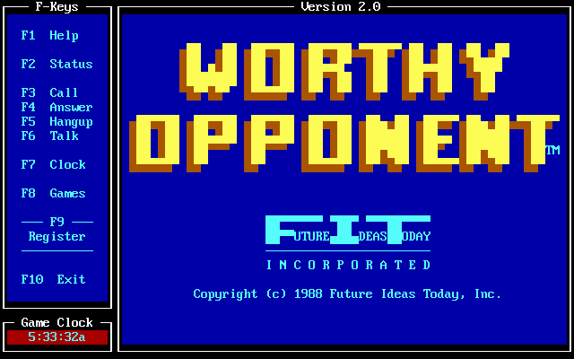 Ultimately, Worthy Opponent captures the spirit of late-’80s online gaming: modest technical demands, nimble interfaces, and a vibrant do-it-yourself community ethos. For collectors, nostalgic players, or anyone curious about the roots of real-time multiplayer, it remains a worthwhile acquisition and a fascinating artifact of an era when every byte counted and every match felt like a mini-festival of wits.