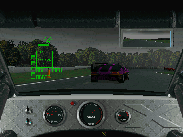 The 3Dfx-accelerated mode lifts the visuals into a new realm, introducing smoother edges, dynamic lighting effects, and more detailed car models. Reflections on vehicle bodywork, shadow casting from surrounding environment objects, and realistic skid marks on the track surface all contribute to a richer sense of immersion. While requiring a compatible Voodoo graphics card, the payoff is worthwhile for those seeking a more modern aesthetic.