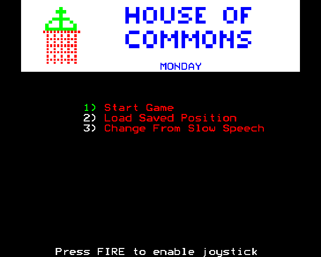 Visually, Yes Prime Minister adopts a modest low-resolution aesthetic, reflecting the era of its original release. Character portraits appear as pixelated headshots, with just enough detail to evoke the familiar faces of Hacker, Humphrey, and Woolley. Though primitive by modern standards, these images carry a nostalgic charm—particularly for fans who remember the original television series.
