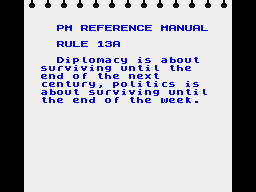 Yes Prime Minister: The Computer Game delivers a political simulation experience wrapped in the charming wit of the BBC’s classic sitcom. Over the course of five working days, you step into Jim Hacker’s shoes, making pivotal decisions on policy, diplomacy, and public relations. Each morning begins with a briefing that sets the agenda—whether it’s negotiating with the French over the Channel Tunnel or soothing an industrial strike at home. This structure keeps the pacing tight and mirrors the real-time urgency of governing a nation.