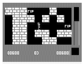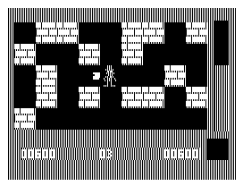 Pit Fiend’s visuals embrace the modest ambitions of a budget label release, yet they manage to deliver clear and functional design across a limited color palette. The dungeon walls, floors, and gates are composed of simple, solid-colored tiles that make it easy to distinguish pathways from obstacles. On the Dragon series machines you can choose from black & white, buff, or green palettes—each giving the game a slightly different atmosphere, from stark monochrome to eerie forest hues.