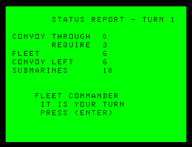 On CRT or early LCD displays, the clarity of the hex grid and distinct ship counters ensures that extended play sessions remain comfortable on the eyes. Though Up Periscope can’t rival today’s HD simulations, its graphics excel in conveying the cold, methodical tension of anti-submarine operations. The game’s visual economy is an asset, focusing your attention on strategic depth rather than decorative flourishes.