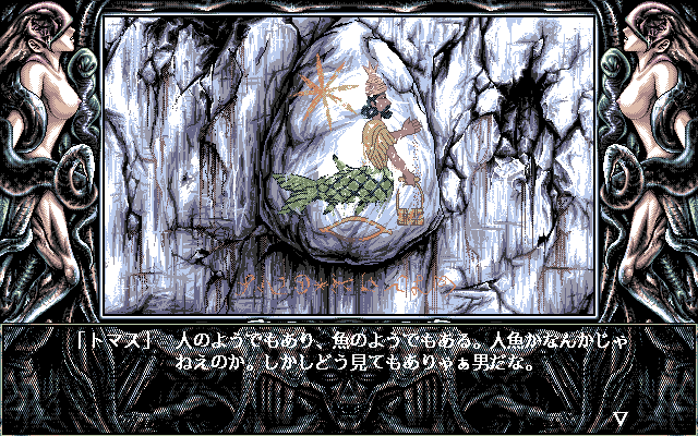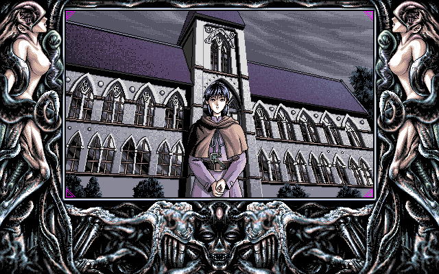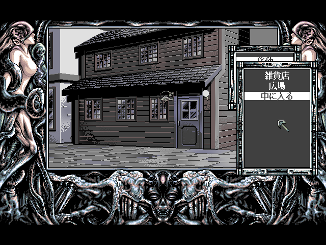 Necronomicon adopts a classic Japanese-style adventure format, but it distinguishes itself with a streamlined, point-and-click interface. Players guide Jonathan, a curious journalist, through the eerie streets of Arkham and the dilapidated ruins of an ancient monastery. Interaction is handled entirely via menu commands or direct clicks on a region-based map, making navigation straightforward for both series veterans and newcomers to the genre.