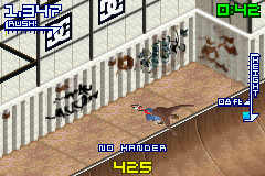 Given the GBA’s hardware constraints, Dave Mirra Freestyle BMX 3 boasts colorful, crisp sprites that bring each rider and environment to life. Character models are well-defined, and the animation frames for tricks are smooth enough to convey a real sense of momentum. When you nail a combo, the camera zoom and subtle motion blur effect add an extra layer of polish that heightens the excitement.