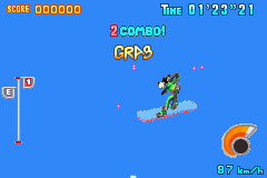 The core mechanics center on navigating full-motion video loops of pre-rendered slopes while your chosen character is super-imposed on top. Steering is mapped to the shoulder buttons, and tricks are executed via combinations of the face buttons and D-pad. This control scheme strikes a good balance between accessibility and skill: newcomers can simply hold a direction and race, while more experienced players can chain together flips, spins, and grinds to boost their score.