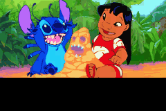 Visually, Disney’s Lilo & Stitch retains the bright, tropical palette of the Hawaii-inspired setting, with lush greens, sparkling blue waters, and vibrant alien environments. Character sprites are well-animated, capturing Stitch’s energetic hops and Lilo’s cautious tip-toes with fluidity. Enemy designs range from goofy little bots to imposing boss creatures, each rendered with enough detail to stand out against the backdrop.