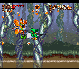 Running on the SNES hardware, Disney’s Magical Quest 3 offers vibrant, hand-drawn sprites that bring Mickey, Donald and Storybook Land to life. Character animations are fluid and full of personality—Mickey’s lance poke feels sharp and prissy, Donald’s hammer swings hilariously over-the-top, and even minor enemies wobble and squawk with cartoon flair. Backgrounds are richly detailed, from haunted libraries filled with floating tomes to candy-coated castles that shimmer in pastel hues.