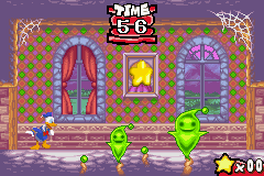 The side-scrolling attraction levels transition smoothly and showcase clean sprite work for Mickey, Minnie, Donald, and Daisy. Enemy animations are simple yet expressive, and particle effects—like stars exploding when collected—add a satisfying flair. While the GBA’s hardware limits resolution and color depth, the game’s art direction cleverly maximizes the system’s strengths, resulting in an overall polished look.