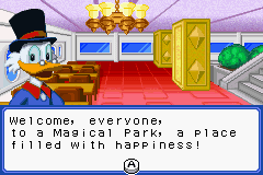 On the Game Boy Advance, Disney’s Party stands out with vibrant, colorful visuals that faithfully capture the look and feel of classic Disney characters and park attractions. The boards themselves are richly detailed, with each of the four themes boasting distinct color palettes and animated background elements. These design choices inject personality into each area, making every board instantly recognizable and visually engaging.