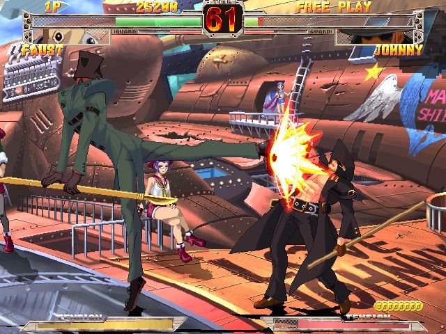 On modern hardware or re-releases, the graphics benefit from crisp scaling and smooth frame rates, ensuring that Guilty Gear X remains as eye-catching as its later successors. The clean line work and vibrant palette help the characters pop against the background, making it easy to track the action even in the most frantic exchanges.