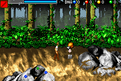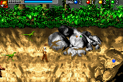 For a Game Boy Advance title, Jurassic Park III: The DNA Factor exhibits surprisingly detailed sprite work and colorful environments. The jungle backdrops are lush and varied, with layered parallax scrolling that gives a sense of depth as you traverse dense foliage, crumbling ruins, and volcanic caverns. Character animations—whether you’re rolling to dodge a Velociraptor strike or assembling DNA strands—are smooth and expressive despite the system’s limitations.