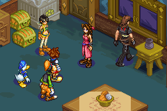 While the GBA’s resolution inevitably limits the level of detail compared to home consoles, the game’s art direction shines through. Familiar Disney worlds are instantly recognizable, and Square Enix’s original character designs are faithfully adapted. For a handheld title of its era, Chain of Memories delivers a polished, charming presentation that complements the core gameplay.