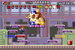 On the Game Boy Advance hardware, Mario vs. Donkey Kong shines with bright, colorful sprites that pop off the screen. Each environment—from factory conveyor belts to mechanical gears—features crisp pixel work and smoothly animated hazards. The clarity of the visuals helps in tight platforming sections where split-second decisions matter.