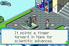 The overworld segments retain the series’ signature top-down perspective, with clean town layouts and detailed NPC sprites. Entering buildings or cyberspace zones triggers brief transition animations that, while simple, add polish. Environmental details—such as moving screens in Netopia or flickering lights in the Dark Chip Factory—enhance immersion without overwhelming the system’s limitations.