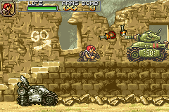 Performance on the GBA is generally solid, with a stable frame rate that keeps action sequences clear and readable. Occasional slowdowns occur when dozens of bullets and grenades fill the screen, but these moments only heighten the sense of chaos rather than detract from it. Overall, the presentation does an exceptional job of capturing the spirit of the arcade originals in a handheld package.