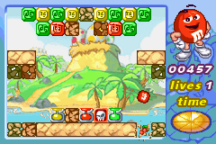 M&M’s Break ’Em puts a fresh, candy-coated twist on the classic pinball-meets-puzzle formula. You control one of five M&M characters—Red, Yellow, Blue, Green, or Orange—bouncing them off walls, bumpers, and special pots to match and shatter coloured crystals. As you ricochet your M&M around the screen, every tap of the D-pad or stroke of the stylus (on DS) feels responsive, making the core loop of “hit crystals, rack up points, clear the board” immediately satisfying.