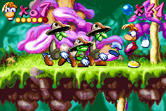 Rayman Advance’s visuals are a testament to the talent of the original artists, translated into a crisp 240×160 resolution on the Game Boy Advance. The hand-drawn sprites retain their vibrant colors, expressive animations, and whimsical backgrounds. While the hardware imposes some limitations, the frame rate remains smooth, ensuring that every jump, punch, and glide looks as fluid as intended.