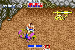 Visually, SEGA Smashpack toes the line between retro authenticity and necessary downscaling. Golden Axe’s fleshy palette of reds and blues remains bold, although finer background details occasionally blur when the screen scrolls quickly. The GBA’s 240×160 resolution forces a more compact view, but character sprites retain their heft, and enemy animations never drop too many frames.