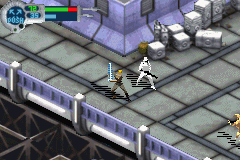 Special effects—from the glow of a saber slash to the distortion of a Force Push—are clearly visible and lend a satisfying punch to each encounter. Cutscenes use a combination of in-engine graphics and still-frame artwork to advance the narrative, creating a comic-book style that suits the Game Boy Advance’s limitations. Though it doesn’t reach console-level polish, the graphical presentation remains among the genre’s best on the platform.