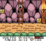 Time limits in many stages push you to move with urgency, and an adjustable difficulty setting tailors the experience to both younger players and veterans. Unlike its SNES successor, this Game Boy installment omits two-player co-op, but the GameBoy Color edition compensates somewhat by introducing level codes, letting you jump back into completed stages without a password reset—an invaluable convenience for on-the-go handheld play.