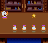 Dialogue is minimal but effective, using short text exchanges to set up challenges or explain objectives. While there’s no voice acting (unsurprising on GBC hardware), the text boxes use character likenesses and icons—Belle’s portrait when she speaks, Beast’s when he responds—to reinforce who’s talking. This approach keeps the story moving without bogging down the gameplay with excessive exposition.