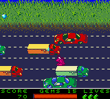 Collectibles play a central role in each stage. Gems are scattered throughout the highway and river segments, encouraging you to take riskier routes or linger on tricky logs for extra rewards. Extra lives are similarly integrated, offering a much-appreciated safety net without removing the game’s inherent tension. When you do slip up, restart points planted mid-level prevent you from losing too much ground, striking a balance between challenge and accessibility.