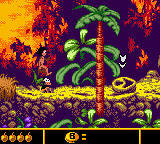 Beyond static visuals, subtle touches like rustling leaves, rippling water, and flickering torches bring the world to life despite the Game Boy Color’s technical constraints. The UI elements—health bars, diamond counters, and lives—are cleanly integrated into the screen edges, ensuring that distractions are kept to a minimum while still relaying essential information clearly.