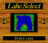 Zebco Fishing! makes the most of the Game Boy Color’s modest palette, delivering clear, colorful visuals that distinguish water, shoreline, and vegetation with surprising nuance. Each lake boasts its own aesthetic: one features lush reeds and murky green hues, while the other is brighter and more open. The contrast helps orient you quickly and adds variety to the environments.