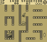 Boomer’s Adventure in ASMIK World delivers a blend of puzzle-solving and action-platforming that challenges players on every floor of the Tower of Zoozoon. Each of the eight levels presents a unique layout filled with breakable floors, hidden traps, and a variety of enemies that require quick thinking and precise timing. Boomer’s primary tools—his digger and trapping mechanics—encourage creative strategies. You can tunnel under foes to send them tumbling into pits, or lure them into pre-set traps before sealing your victory with a well-placed block.