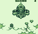 Visual clarity is further enhanced by the variable bell colors system, which translates into different gray tones on the GameBoy display. This ensures that power-up states are always easily distinguishable, preventing confusion in the heat of battle. Overall, Pop’n TwinBee proves that thoughtful design and strong art direction can overcome hardware limits and deliver a charming, readable experience.