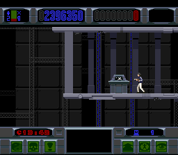 By contrast, the cartridge versions on 16-bit consoles transform The Lawnmower Man into a side-scrolling platform shooter. You alternate between controlling Dr. Lawrence Angelo and Carla Parkette, each with their own default weapon and movement style. Levels are populated with hostile guards, security drones, and VR-created creatures. Collecting power-ups such as upgraded firearms and data discs is essential to stay ahead of the escalating enemy toughness.
