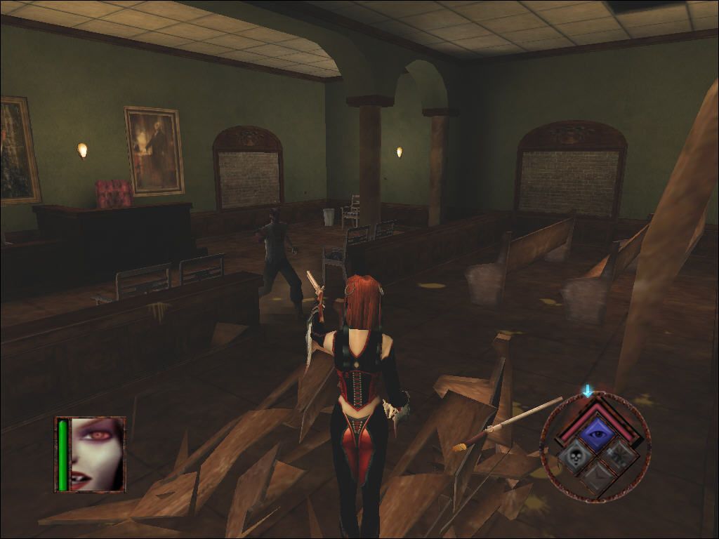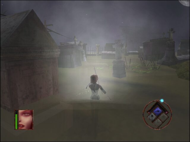 For its era, BloodRayne’s visuals strike a commendable balance between gothic horror and pulpy action. The swampy bayous of Louisiana ooze with mist and creeping shadows, while moonlit cobblestone streets and ornate Nazi fortresses showcase varied and moody level design. Textures can appear somewhat dated by today’s standards, but the art direction—favoring exaggerated blood splatters and grotesque creature designs—lends the game a distinctive, cult-classic charm.