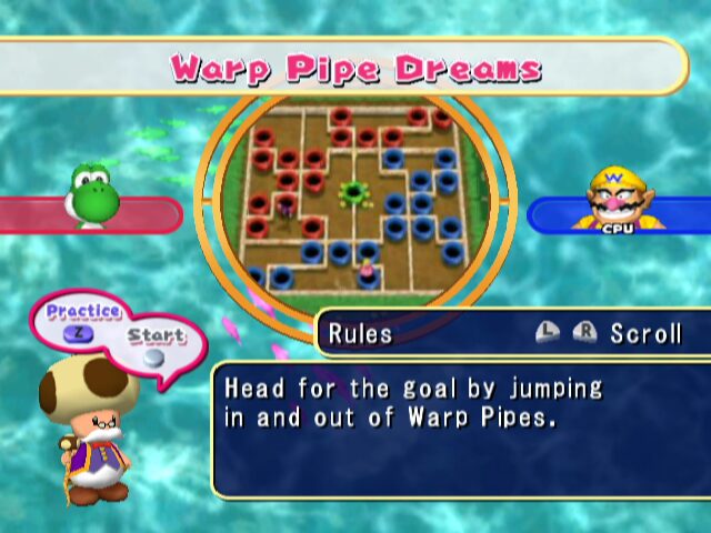 Mario Party 7 also expands the multiplayer experience by supporting up to eight players in a single session. To accommodate this, two players share each controller—one manipulating the left analog stick and the Z button, the other taking the right analog stick and R trigger. While the setup can feel cramped, it encourages collaboration and friendly rivalry. There’s also a single-player “Story” mode where you face CPU opponents in a series of boards, but the game truly shines when played with friends around the TV.