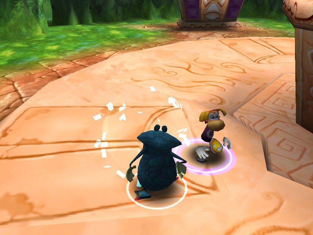 Visually, Rayman Arena retains the vibrant, cartoon-inspired aesthetic that has defined the series from its inception. Tracks brim with bold colors, whimsical set pieces, and dynamic lighting that highlight jumps, speed boosts, and environmental hazards. Whether you’re racing through a glittering ice cavern or battling in a volcanic arena, each stage boasts its own distinct personality backed by crisp textures and smooth animations.