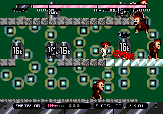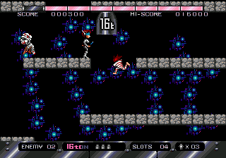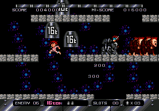 The heart of 16t lies in its deceptively simple yet strategic approach to scrolling platform action. You take on the role of Apple Gaikichi, a youngster clad in prison garb, whose sole weapon is an enormous 16-ton weight. Unlike traditional run-and-gun platformers, your primary task is to lob these massive weights at incoming enemies, carefully timing each throw to ensure they are crushed and not left bouncing dangerously around the stage.