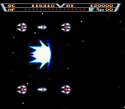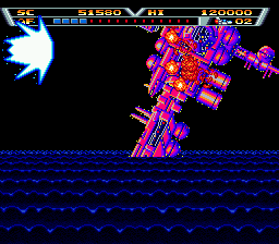 On both ship and robot forms, your craft’s animations are fluid and polished. Laser beams crackle with electric detail, while the robot’s shield effect shimmers in a cascade of particles. Explosions are crisp and satisfying, with debris fragments that linger long enough to add dramatic flair without cluttering the playfield.