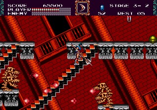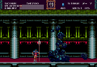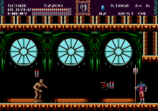 On Sega Genesis hardware, Bloodlines stands out with its richly detailed sprites and atmospheric backdrops. Character animations are fluid, whether you’re performing a whip combo or scaling walls with precise jumps. Enemies, from skeletal warriors to vampiric brides, exhibit distinct designs that make each confrontation memorable.