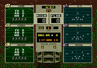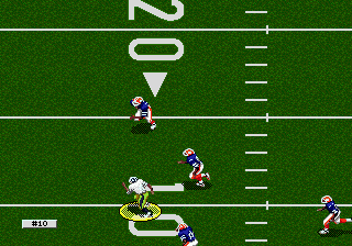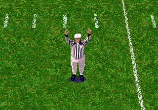 Graphically, College Football’s National Championship represents the 16-bit era’s characteristic charm and limitations. Players are rendered in chunky, colorful sprites that convey basic motion: running, tackling, and throwing animations all look crisp, though they lack the fluid detail of later console generations. Stadium backdrops are static but feature animated crowd waves and goalpost flares during scoring, which help sell the atmosphere despite hardware constraints.